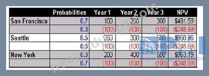 You have been told that the San Francisco market has smaller market potential, but higher probability of success. On the other hand, the New York market has a larger market potential but lower probability of success. And the Seattle market is in between. Your project manager has given you the following forecast. Which of the flowing opportunity is the BEST choice?
