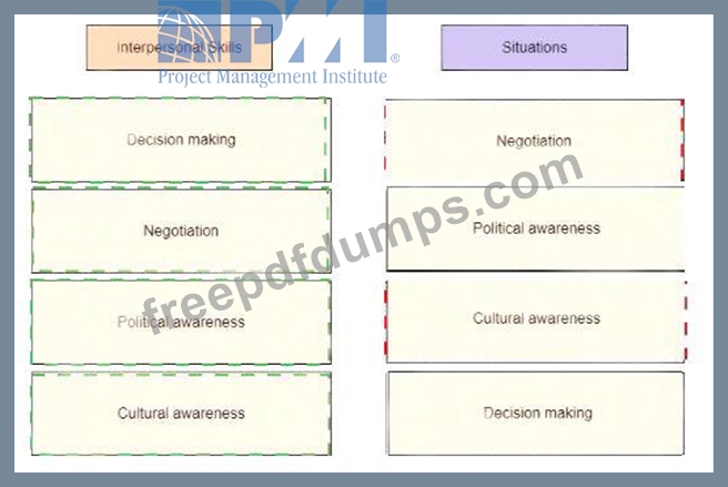 A project manager for a government organization often deals with stakeholder engagement issues Drag the interpersonal skill the project manager should use on t he left to the correct situation on the right