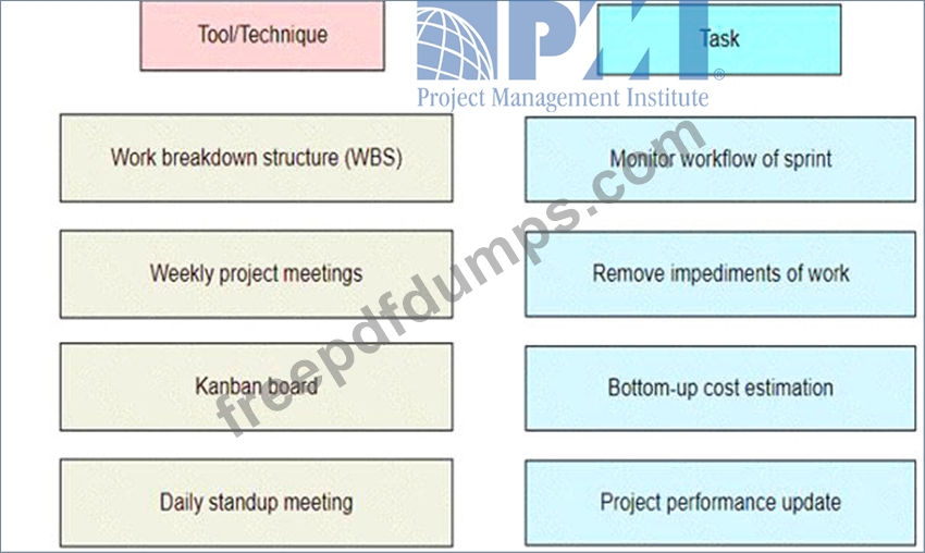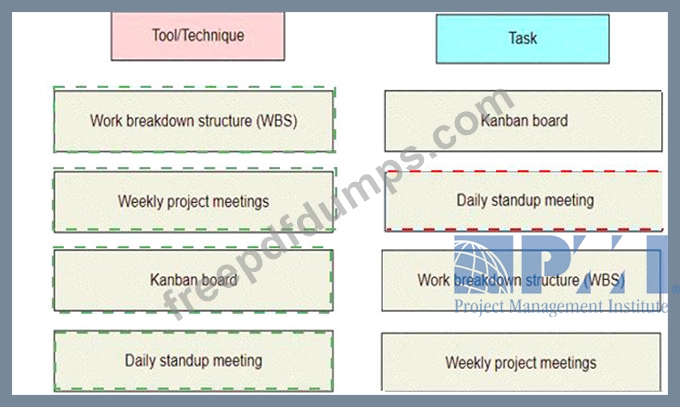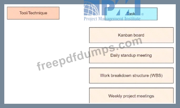 A project manager has been assigned to a software development project that will undergo several iterations until the customer is satisfied. Match the tool or technique on the left that the project manager should utilize to ensure tasks are efficiently managed to the correct task on the right.