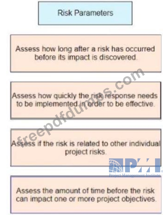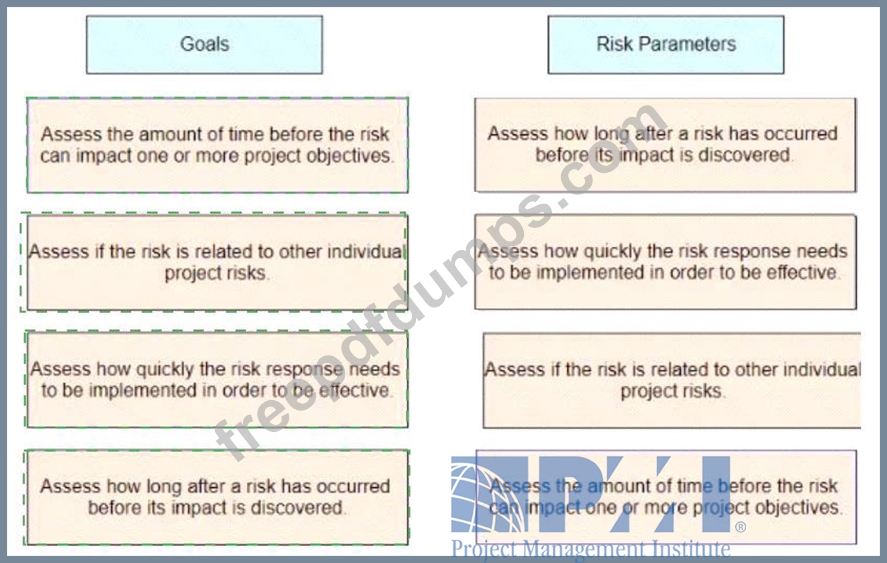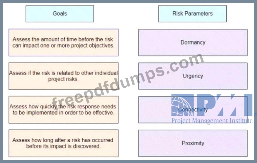 Match the project manager's goals on the left with the relevant risk parameter on the right.