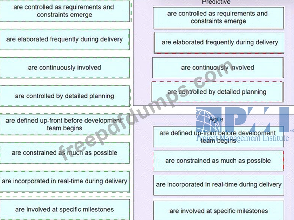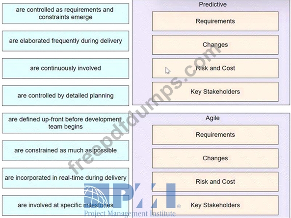 Drag the items on left side to the matching term within the correct project approach on the right side.