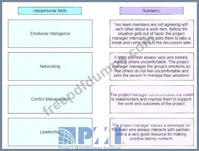 Drag the interpersonal skill on the left to the correct scenario on the right.