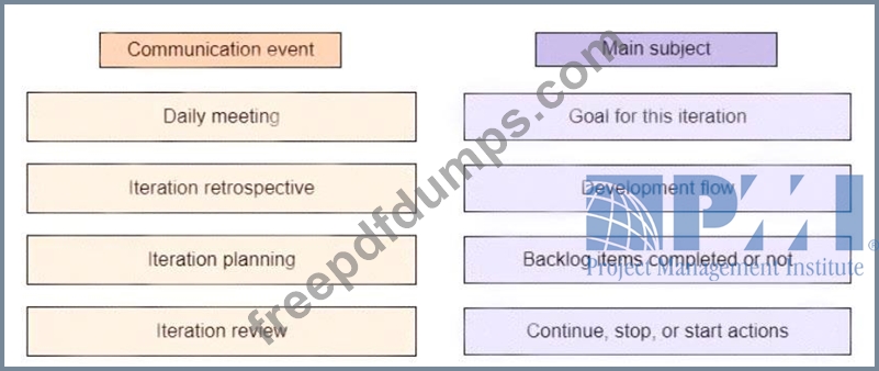 Drag the communication event on the left to the mam subject discussed during the event on the right.