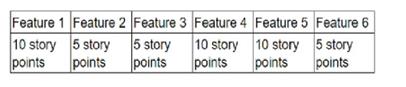 An agile team has sized all of the features for the release. Using the table above, how many sprints will it take to complete this release if the team is expecting to have a velocity of 10 story points per sprint?