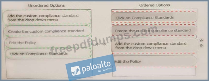 Which order of steps map a policy to a custom compliance standard?