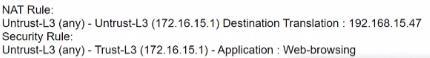 A user at an external system with the IP address 65.124.57.5 queries the DNS server at 4. 2.2.2 for the IP address of the web server, www,xyz.com. The DNS server returns an address of 172.16.15.1 In order to reach Ire web server, which Security rule and NAT rule must be configured on the firewall?