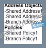 Address Objects -Shared Addressl -Shared Address2 -Branch Addressl Policies -Shared Policyl -Shared Policy2 -Branch Policyl