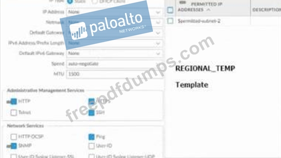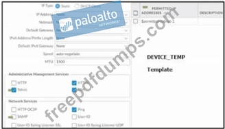 Based on the images below, and with no configuration inside the Template Stack itself, what access will the device permit on its management port?