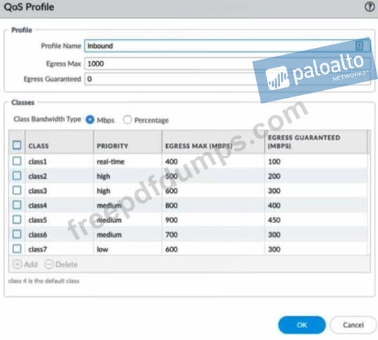 A QoS profile is configured as shown in the image. The following throughput is realized: