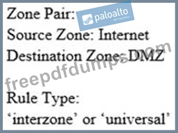 Which Zone Pair and Rule Type will allow a successful connection for a user on the Internet zone to a web server hosted on the DMZ zone? The web server is reachable using a Destination NAT policy in the Palo Alto Networks firewall.