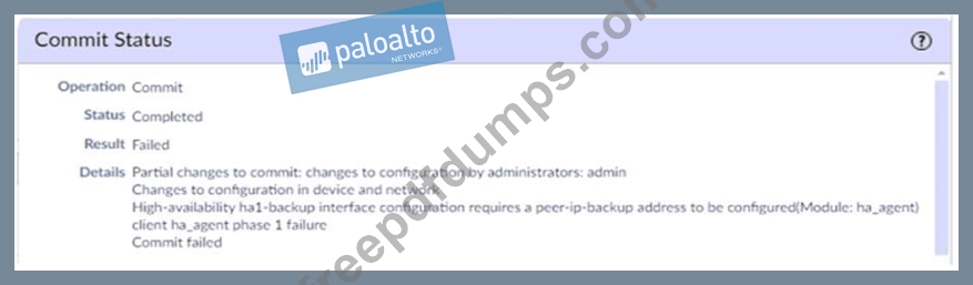 After configuring HA in Active/Passive mode on a pair of firewalls the administrator gets a failed commit with the following details.