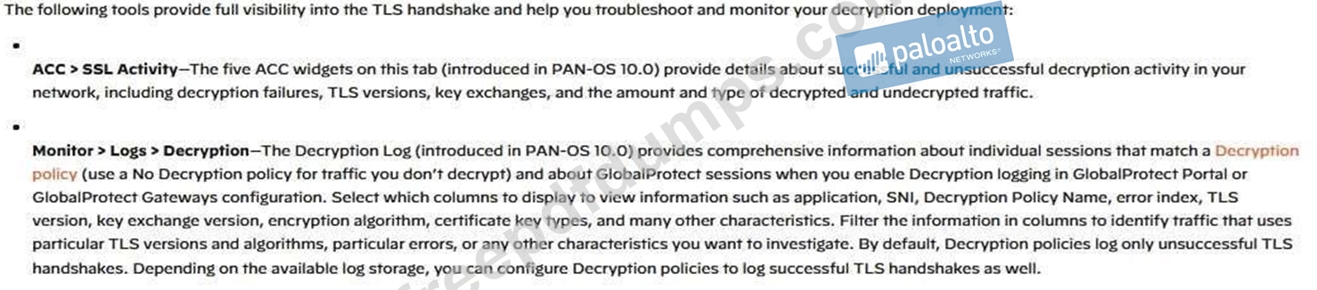 Which logs enable a firewall administrator to determine whether a session was decrypted?