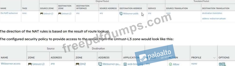 Which NAT and security rules must be configured on the firewall? (Choose two)