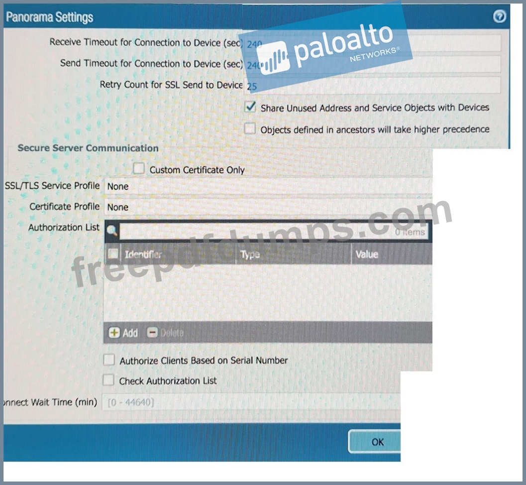 An administrator cannot see any if the Traffic logs from the Palo Alto Networks NGFW on Panorama. The configuration problem seems to be on the firewall side. Where is the best place on the Palo Alto Networks NGFW to check whether the configuration is correct?