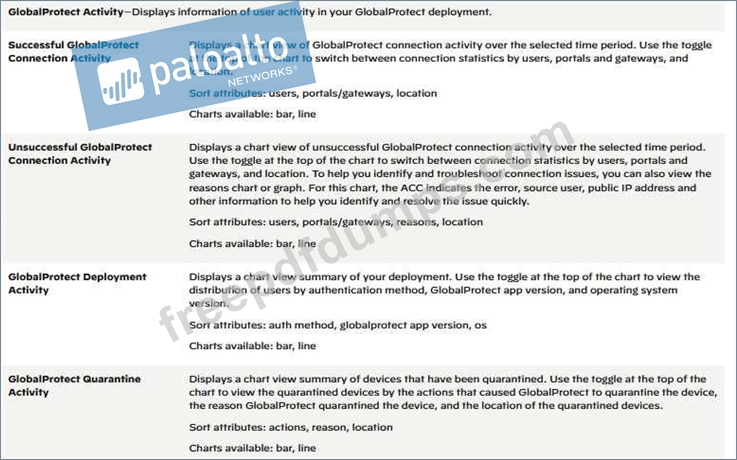Which two are valid ACC GlobalProtect Activity tab widgets? (Choose two.)