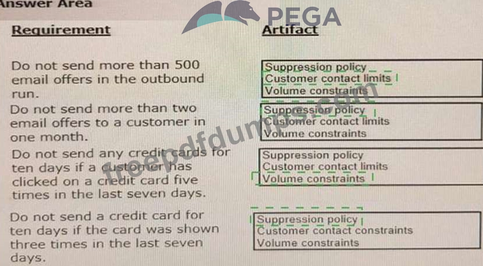 In the Answer Area, select the correct artifact you use to implement each requirement.