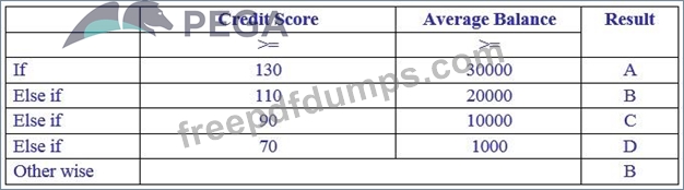 U+ Bank uses a decision table to return a label for a customer. Examine this decision table and select which label is returned for a customer with a credit score of 115 and an average balance of 15000.