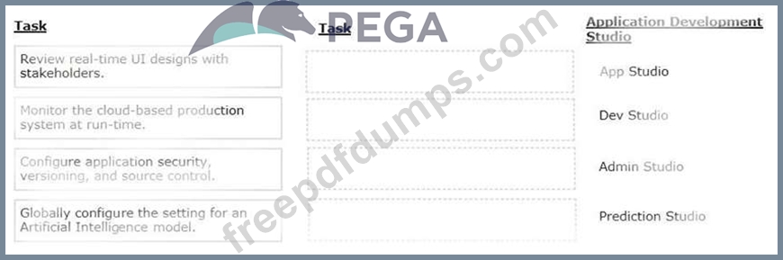 Select each task on the left and drag it to the corresponding Application Development Studio on the right, where the task can be completed.
