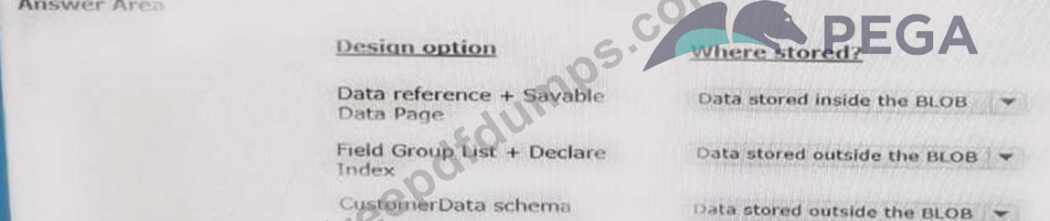 In the Answer Area, determine where data is stored for each design option.