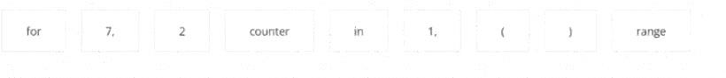 Arrange the code boxes in the correct positions in order to obtain a loop which executes its body with the counter variable going through values 1, 3 , and 5 (in the same order)