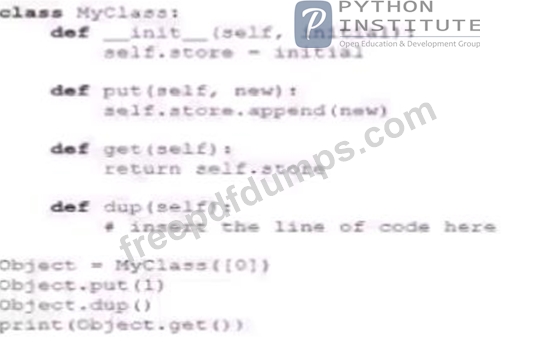 Which of the following lines of code will work flawlessly when put independently inside the add_new () method in order to make the snippet's output equal to [0, 1, 1] ? (Select two answers)