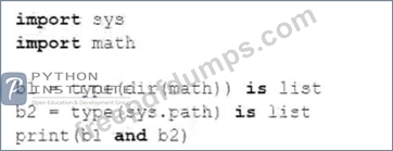 Assuming that the following snippet has been successfully executed, which of the equations are True? (Select two answers)