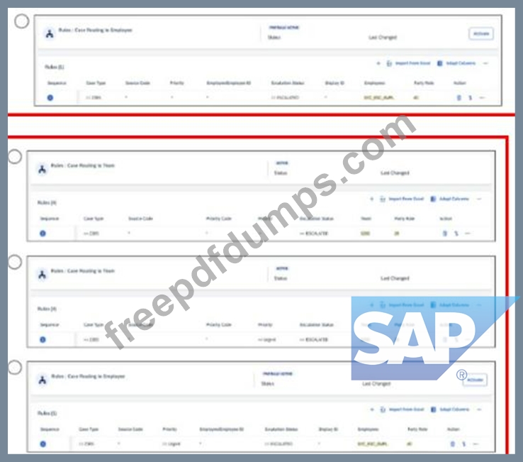 Which of the following options is correct in the configuration, if you want to assign an escalated case with priority urgent to a team? Note: Scroll down to view all possible answer options.