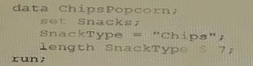 The data set Snacks contains three variables (productName, Flavor, and Price). Given the program shown below: