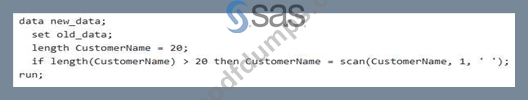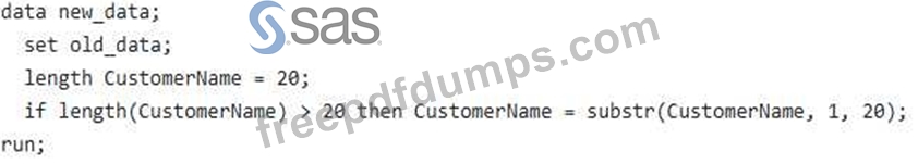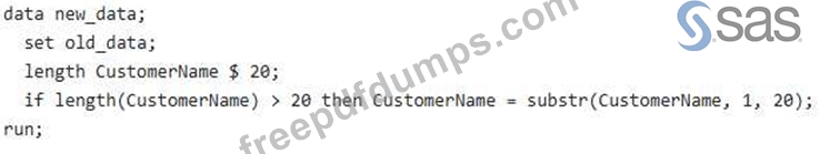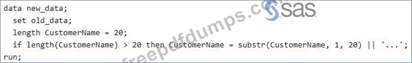You are working with a dataset containing customer names. Some names are longer than 20 characters. You need to truncate these names to a maximum of 20 characters. Which of the following code snippets correctly uses the LENGTH statement to achieve this within a DATA step? ' 'Note' ': Assume the variable 'CustomerName' is a character variable.