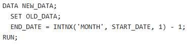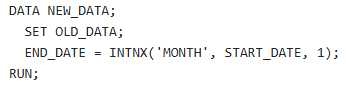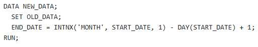 You have a dataset with a variable 'START DATE' representing the start date ofa project. You want to create a new variable 'END DATE' which is set to the 1st of the month following 'START DATE'. Which code snippet correctly calculates 'END DATE'?