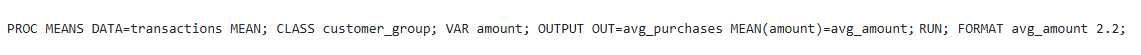Which of the following options correctly implements the desired output formatting in SAS using PROC MEANS?