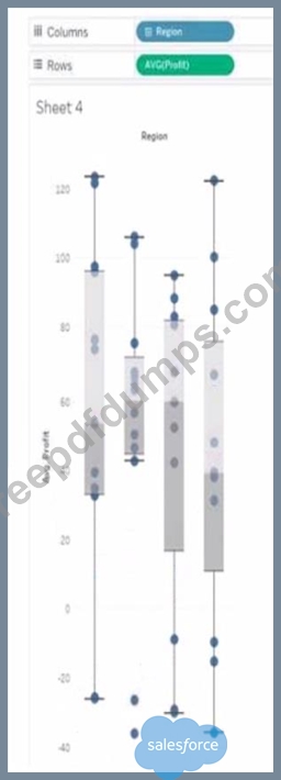 You have the following box plot that shows the distribution of average profits made in every state by region.