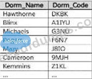 The analyst receives the following secondary data source that contains updated dorm codes.