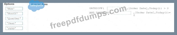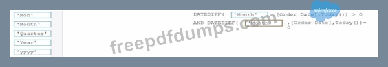 [Order Date] <= TODAY () AND DATETBUNC {"year", [Order Dace]) = DATETPUNC)"year", TODAY(J) You want to create a calculated column named Exclude Current Month that will be dragged to the Filters shell. Exclude Current Month will exclude the current month values from YTD Sales.