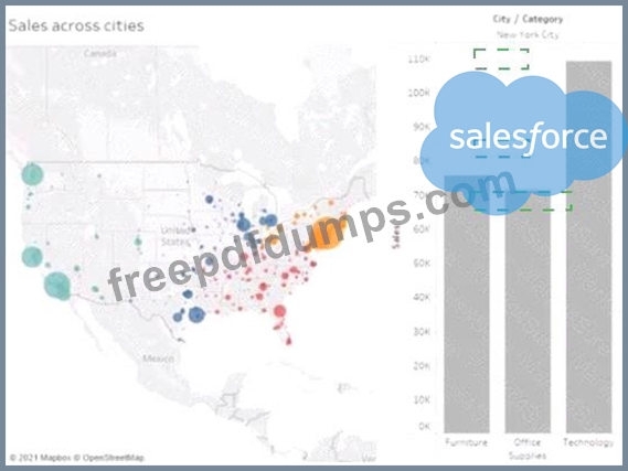 The data in the bar chart must change only when the user selects a different city How should you configure the dashboard action? (Use the dropdowns in the Answers Area to select the correct options.)