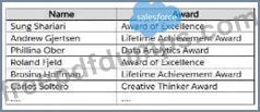 A Data Analyst has a dataset that contains people and the awards they have won.