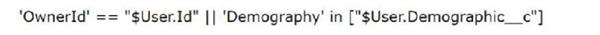 An individual sales rep should be able to view all accounts that they own. In addition, sales reps should be able to see any accounts where the value of the account demography matches the demography defined on their user record. A user could have more than one demography defined on their user record.