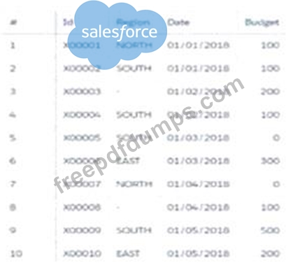 Universal Containers (UC) creates a dataset, "Book11", containing a budget per region per month for the first
