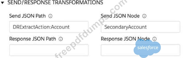 You have configured an Integration Procedure element with SEND/RESPONSE TRANSFORMATIONS as shown.