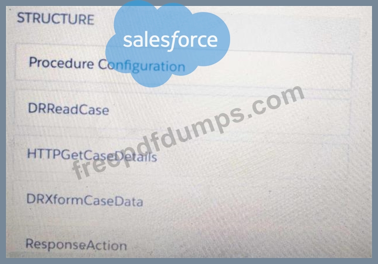 Refer to the exhibit below. What is the merge code needed for this Integration Procedure structure to pass a CaseData node from the HTTP Action's output to the DataRaptor Transform Action?