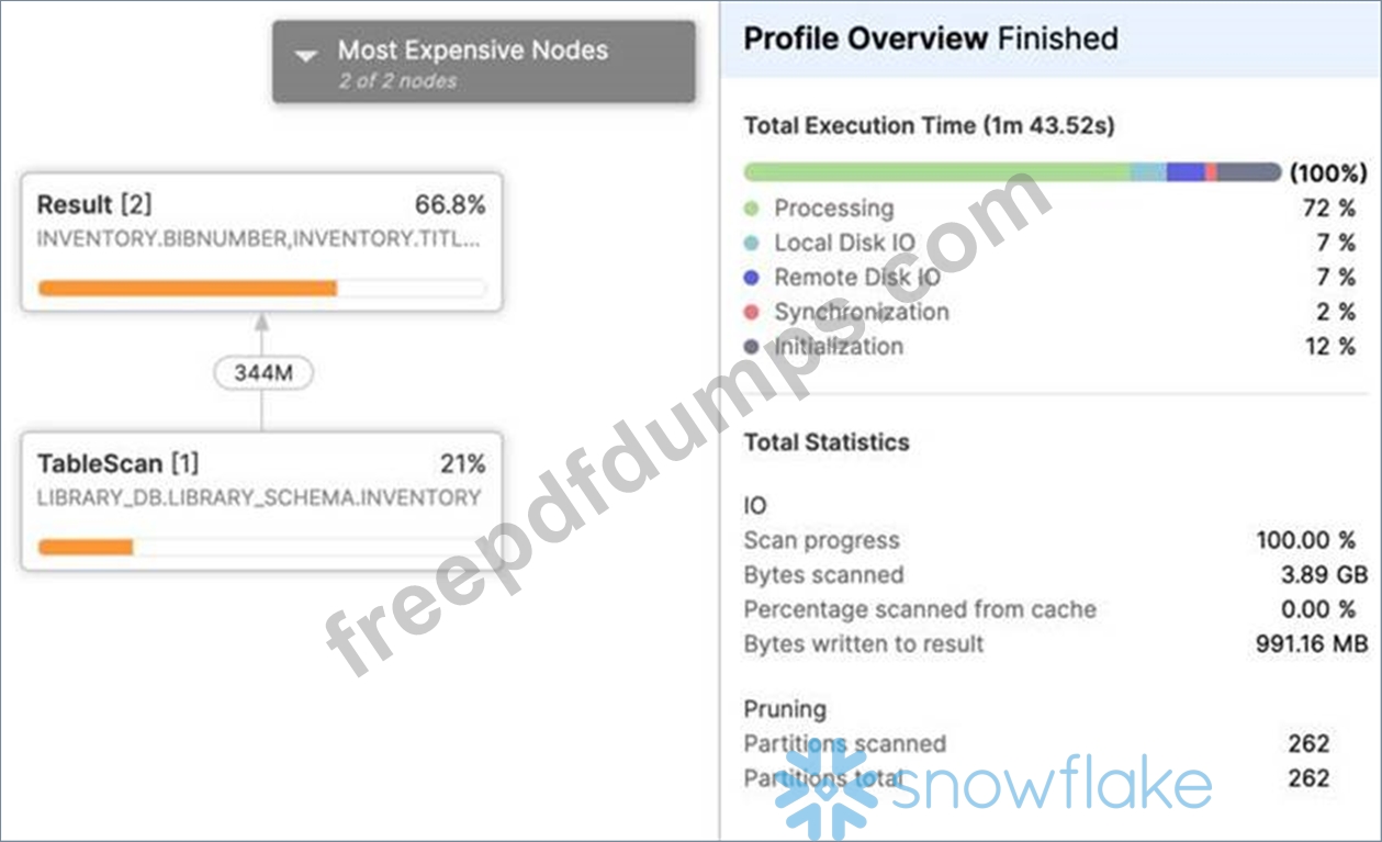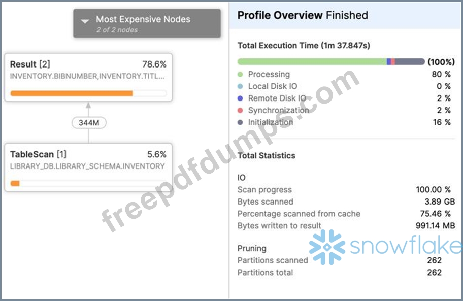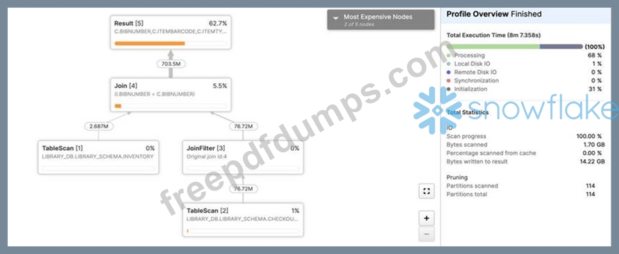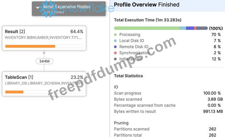 The query profile looks like as below. Please see below 'Percentage scanned from cache' is 0%