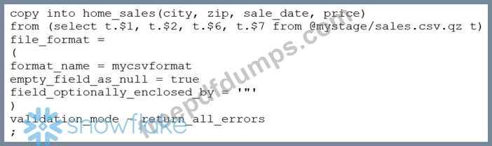 Consider the following COPY command which is loading data with CSV format into a Snowflake table from an internal stage through a data transformation query.