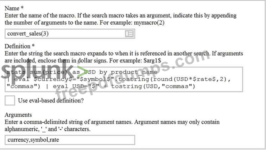 Based on the macro definition shown below, what is the correct way to execute the macro in a search string?
