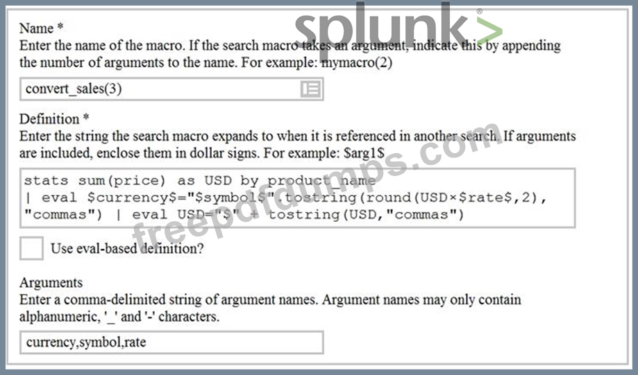 Based on the macro definition shown below, what is the correct way to execute the macro in a search string?