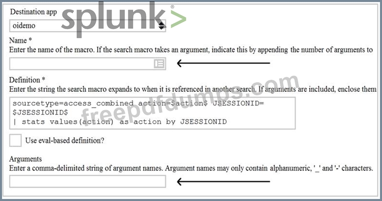 Given the macro definition below, what should be entered into the Name and Arguments fileds to correctly configured the macro?